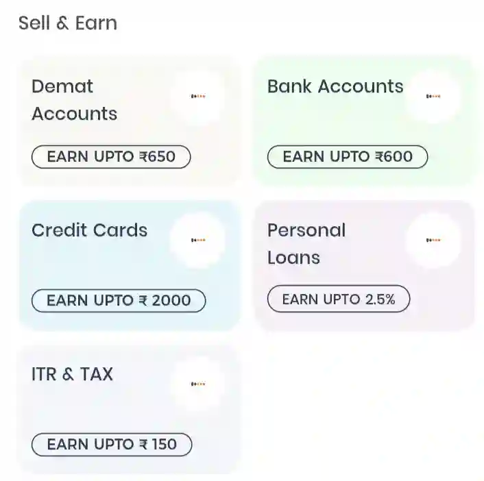 इसके अलावा आप इसमें डिमेट एकाउंट खोल सकते है जिसमें आपको एक डिमेट एकाउंट के 450 रूपये मिलते है ऐसे ही किसी को लोन लेना हो तो उसपर एक अलग कमीशन मिलता है और इसमें EMI Card बना सकते है जिसमें 110 रूपये तक मिलते है ऐसी ही इस App तमाम सर्विस है जिनका आप उपयोग करके इसमें कमीशन कमा सकते है।