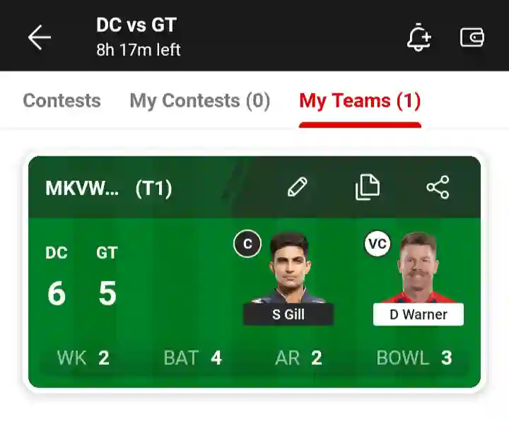 इतना करते ही आपका Dream11 में टीम बन जायेगा जिसे आप ऊपर “My Team” के ऑप्शन पर कि्लक करके देख सकते है या फिर चाहे तो पेंसिंल के निशान पर कि्लक करके फिर से टीम को Edit भी कर सकते है और अपनी बेस्ट टीम बना सकते है