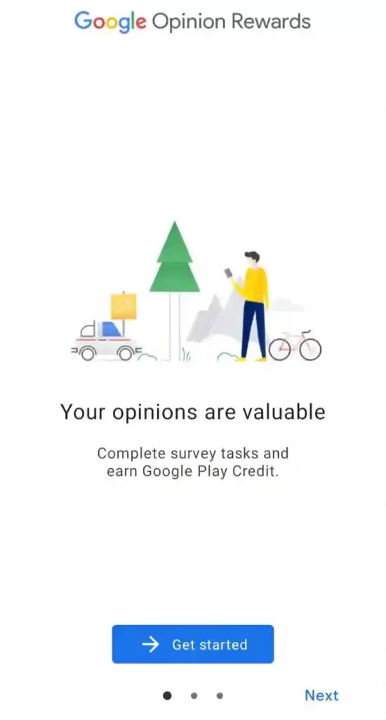 Step 1. सबसे पहले आपको Google Opinion Rewards App Download करना है फिर उसे ओपन करना है जहाँ App Open होने पर कुछ इस तरह का ऑप्शन देखने को मिलेगा।