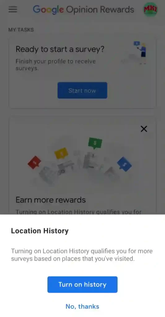 Step 7. इतना करते ही आप Google Opinion Rewards App में एकाउंट बन चुका है जहाँ से आप सर्वे करके पैसे कमाना शुरू कर सकते है।