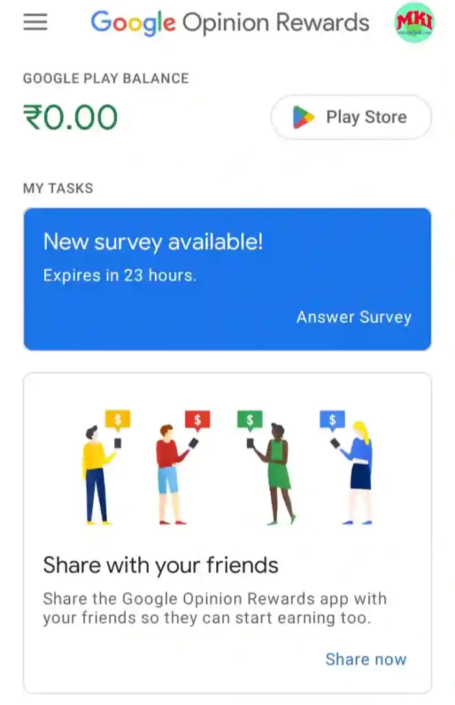 Google Opinion Rewards पर सवालो के जवाब देने पर पैसे मिलते है जो रूपयो में आपके Wallet में जमा होता है।