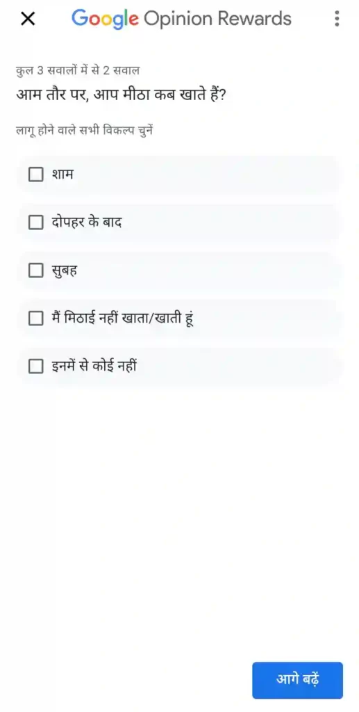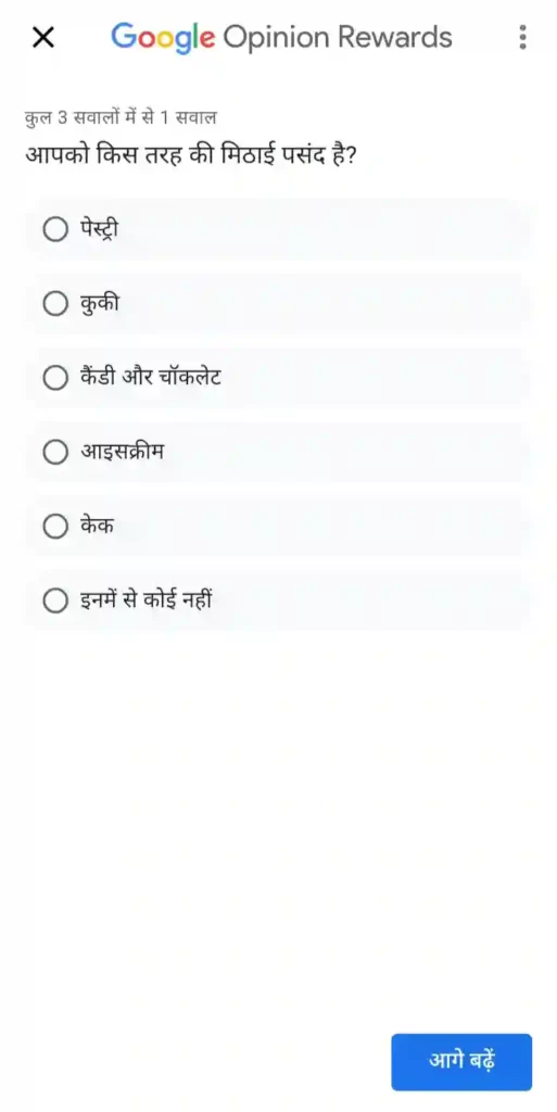 Step 3. इतना करते ही आपके सामने सर्वे आने शुरू हो जायेगा जिसका आपको Answer सेलेक्ट करके “आगे बढ़े” पर कि्लक करना है।