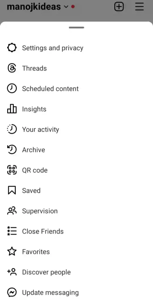 जब आप अपनी प्रोफाइल फोटो पर कि्लक करते है तो आपके सामने थ्री लाइन (Menu) का ऑप्शन दिखाई देता है तो आपको इस मेनु के ऑप्शन पर कि्लक करना है जैसा इस चित्र में दिखाया गया है