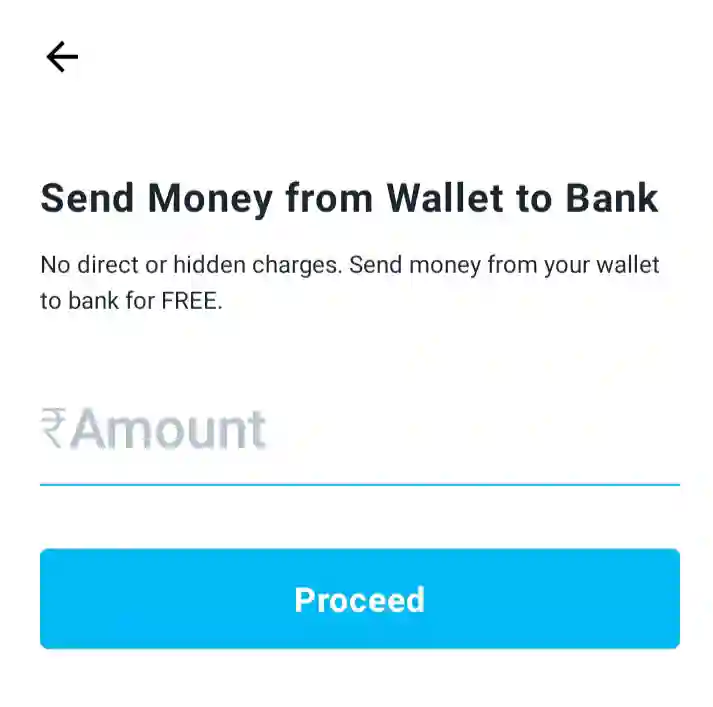 जब आप Transfer To Bank पर कि्लक करते है अगले स्टेप में आपको Amount भरने का ऑप्शन दिखाई देता है तो आप जितना भी पैसा Paytm Wallet से Bank Account में निकालना चाहते है वह Amount यहाँ डाले और नीचे दिये गये ऑप्शन Proceed पर कि्लक करे।