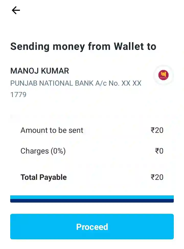 जैसे ही आप Proceed पर कि्लक करते है कुछ सेकेंड प्रोसेसिंग होती है जिसके बाद आपके Paytm Wallet का पैसा आपके बैंक एकाउंट में Withdrawal हो जाता है जिसे आप अपने बैंक एकाउंट में चेक कर सकते है जो तुरंत के तुरंत आपके बैंक में Credit दिखाई देगा।