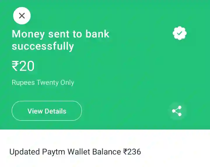 Step 7. Paytm Wallet का पैसा आपके बैंक एकाउंट में Withdraw हो चुका है