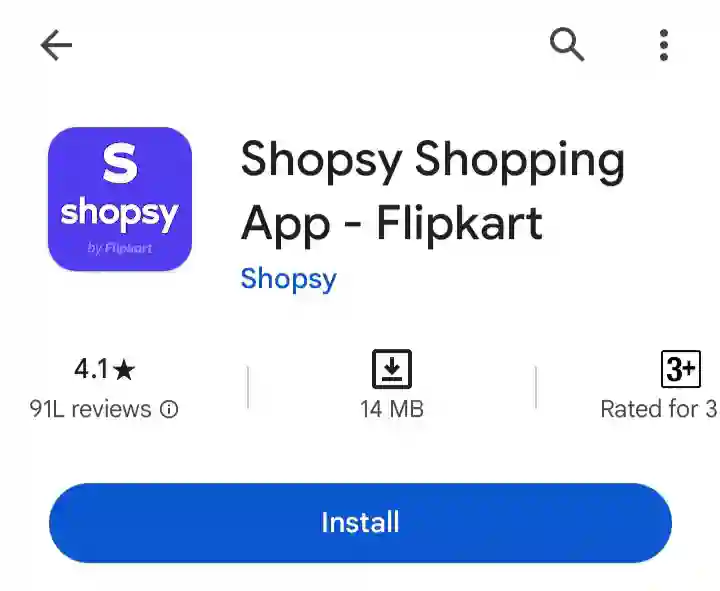 - Shopsy Search करने के बाद आपके सामने Shopsy App नजर आएगा, और साथ में आपको install बटन भी दिखेगा, आपको “install” बटन पर क्लिक करना है, इससे आपके मोबाइल में Shopsy App डाउनलोड हो जाएगा।