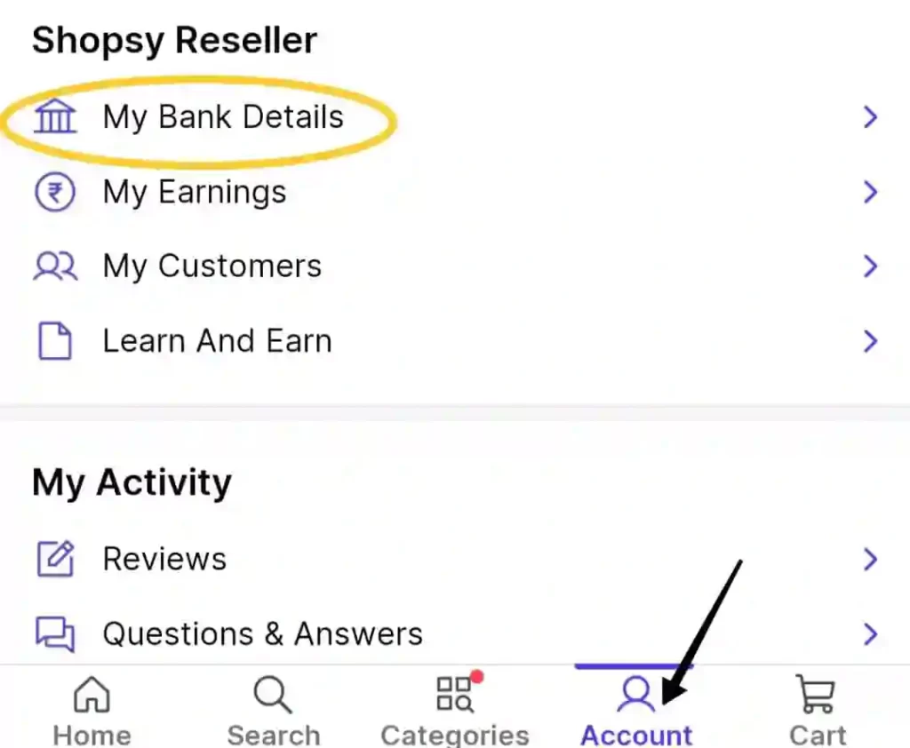 और आपके Shopsy App के Account पर Shopsy App के सभी फीचर Enable हो जाएं, तो Shopsy App में Bank Account जोड़ने के लिए आप नीचे दी गई प्रॉसेस Follow करें:-