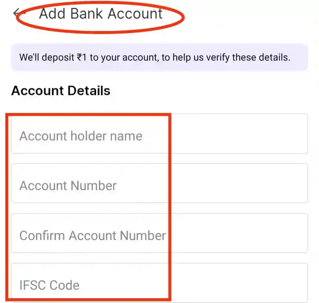 Shopsy App में Bank Account जोड़े